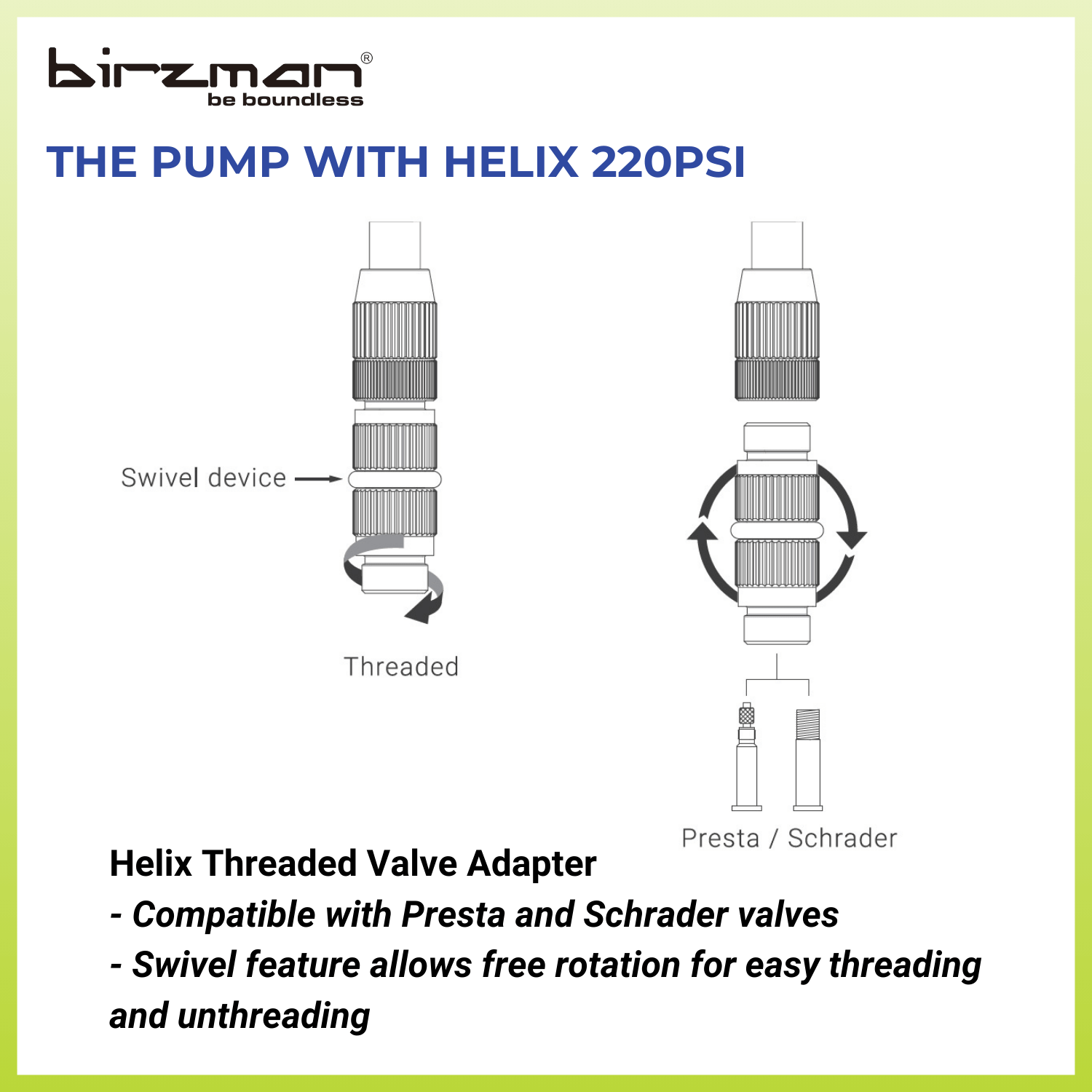 Birzman Helix Threaded Bicycle Floor Pump 220 psi
