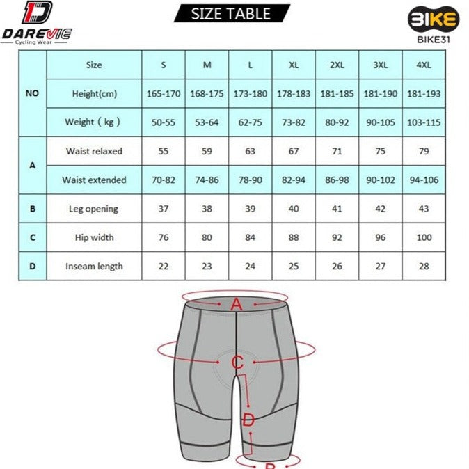 Darevie DVP003 Cycling Shorts with Gel Padding / Size S - 4XL