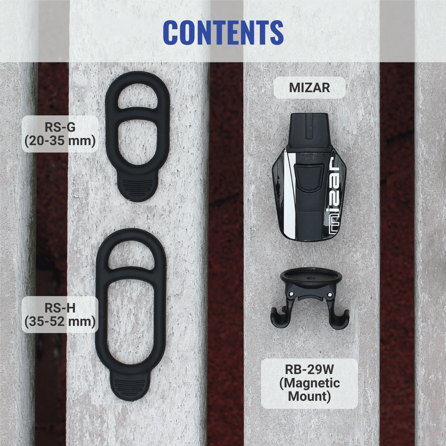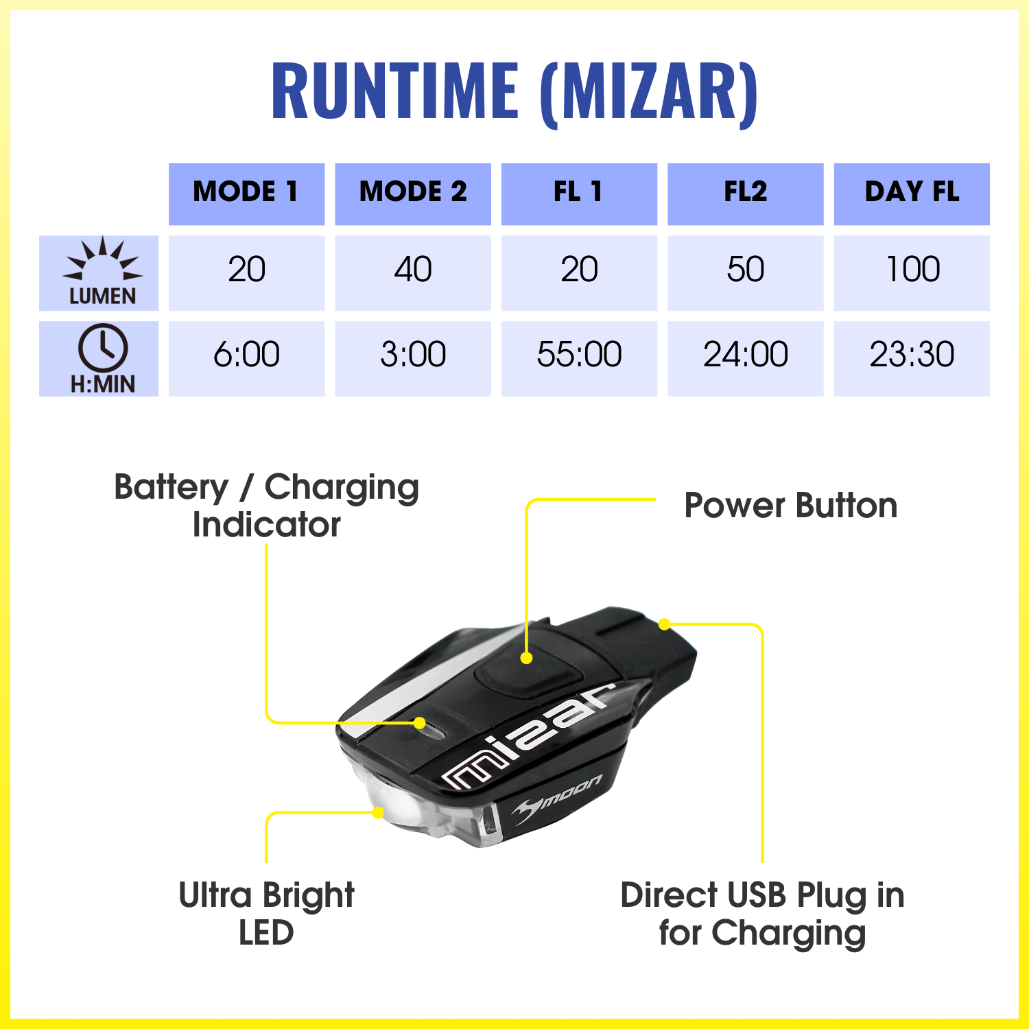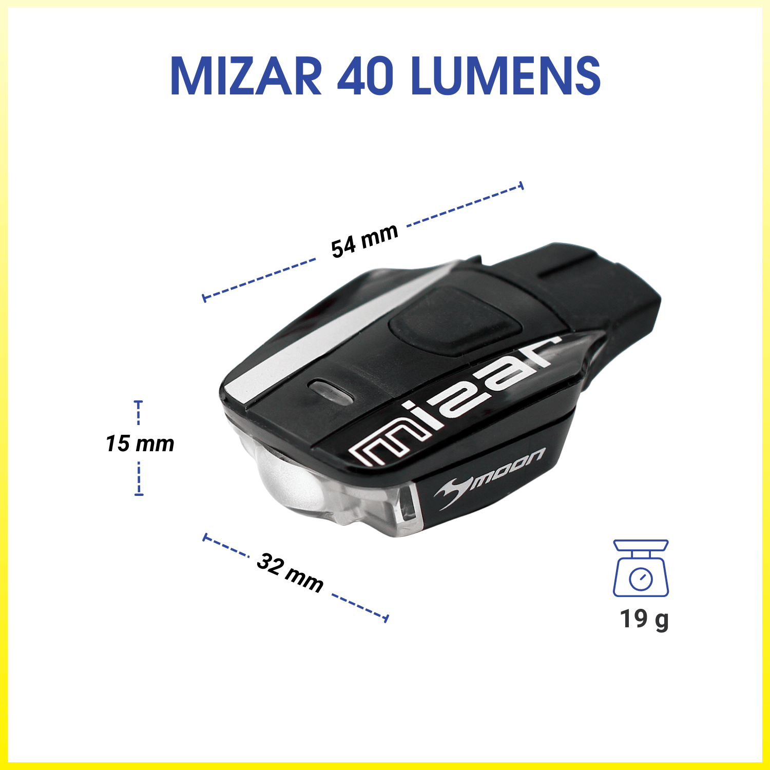 Ultra-light 19g, mini size with 40 lumens steady and 100 lumens flashing modes. Features ultra-bright white LED and quick-release magnetic mount.