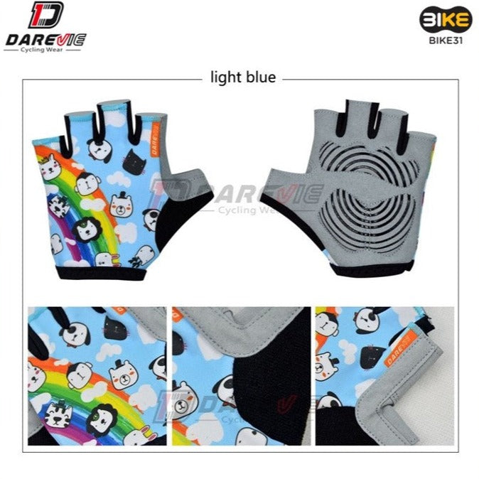 Darevie DVG011 Kids Cycling Gloves / Half Finger / Blue / Light Blue / Size M / L