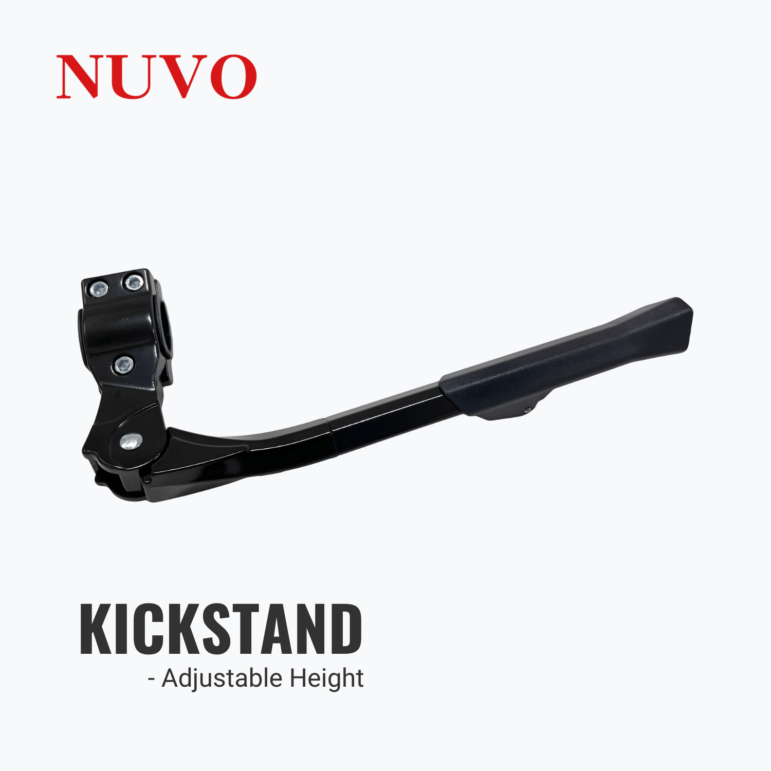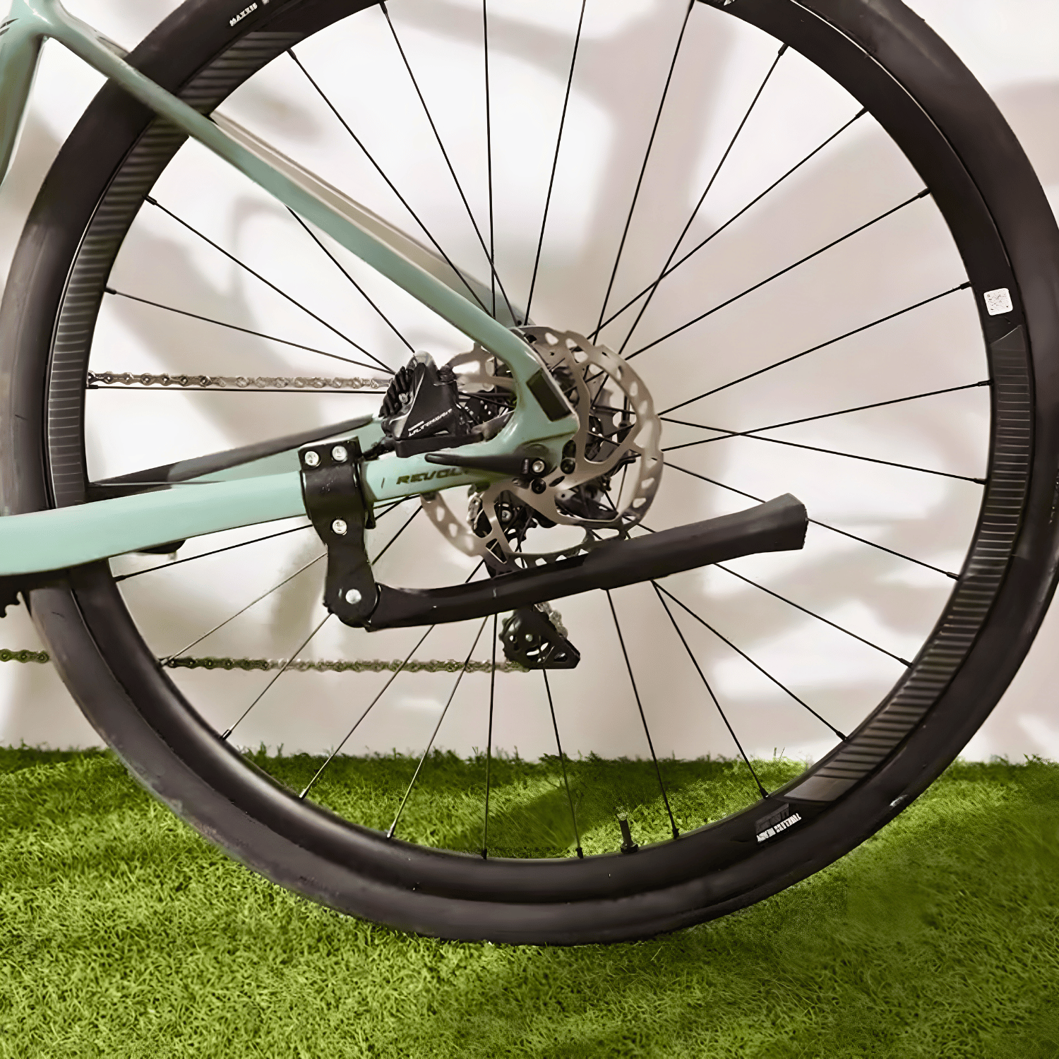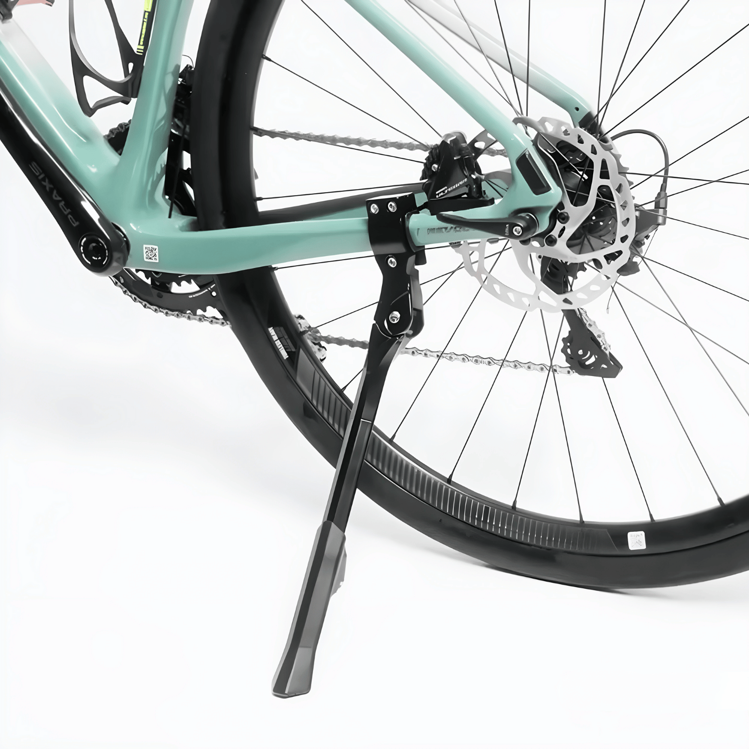 Durable alloy design, fits 26"-29" bikes, adjustable height (37-42cm), max load 35kg, fits rectangular & oval chain stays.