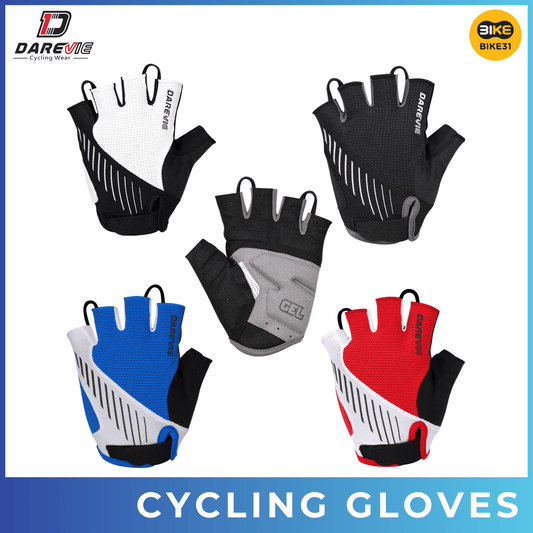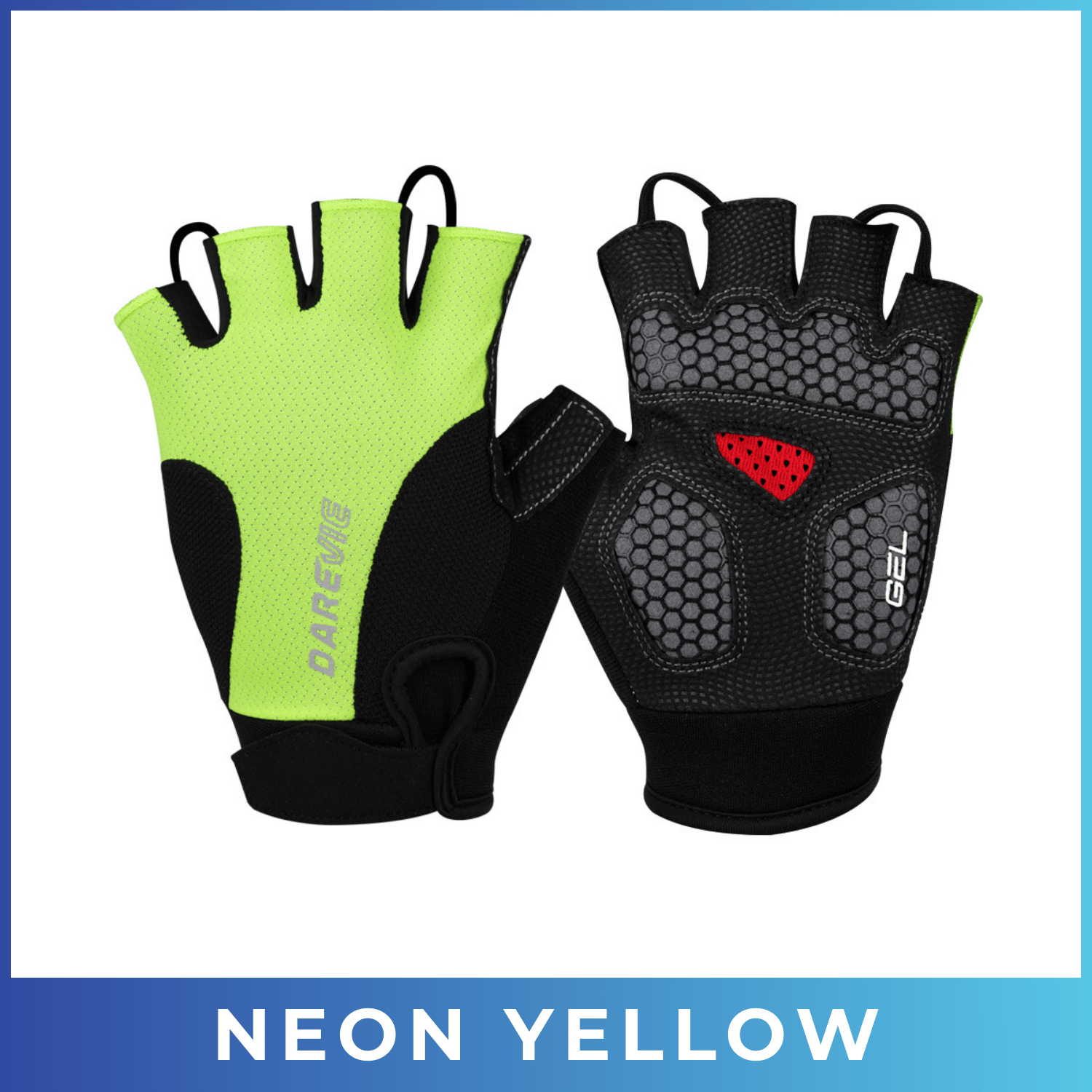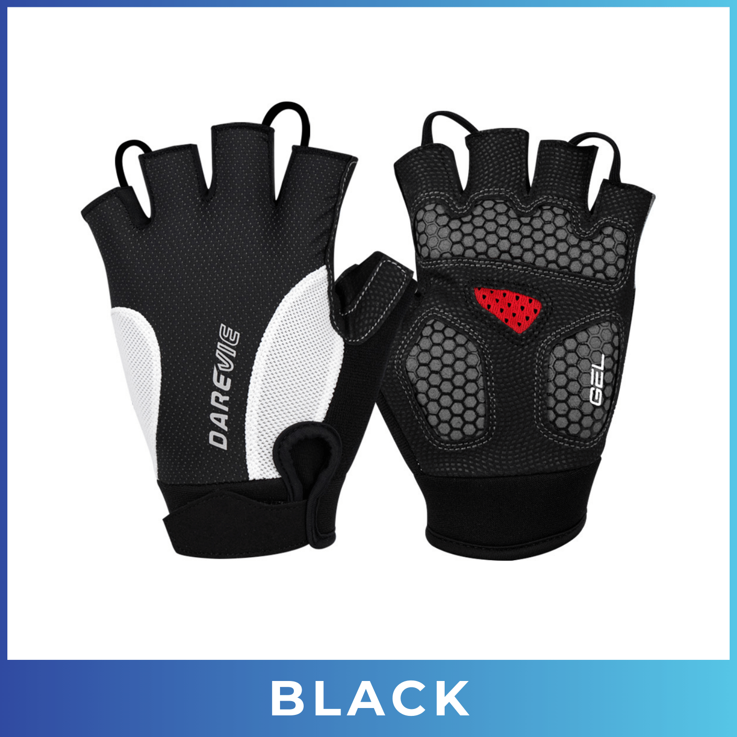 Cycling gloves in 5 colors, Size S to 2XL, featuring shockproof SBR palms, breathable fabric, enhanced strength & durability and handy removal hooks.