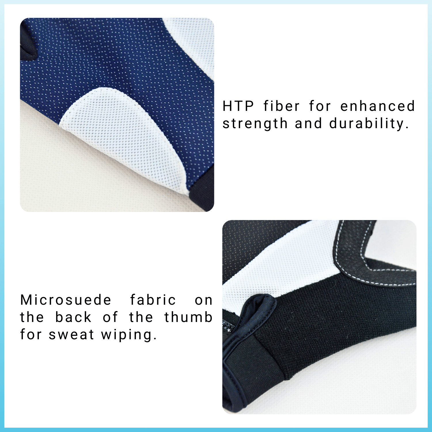 ➤ Microsuede fabric on the back of the thumb for sweat wiping
