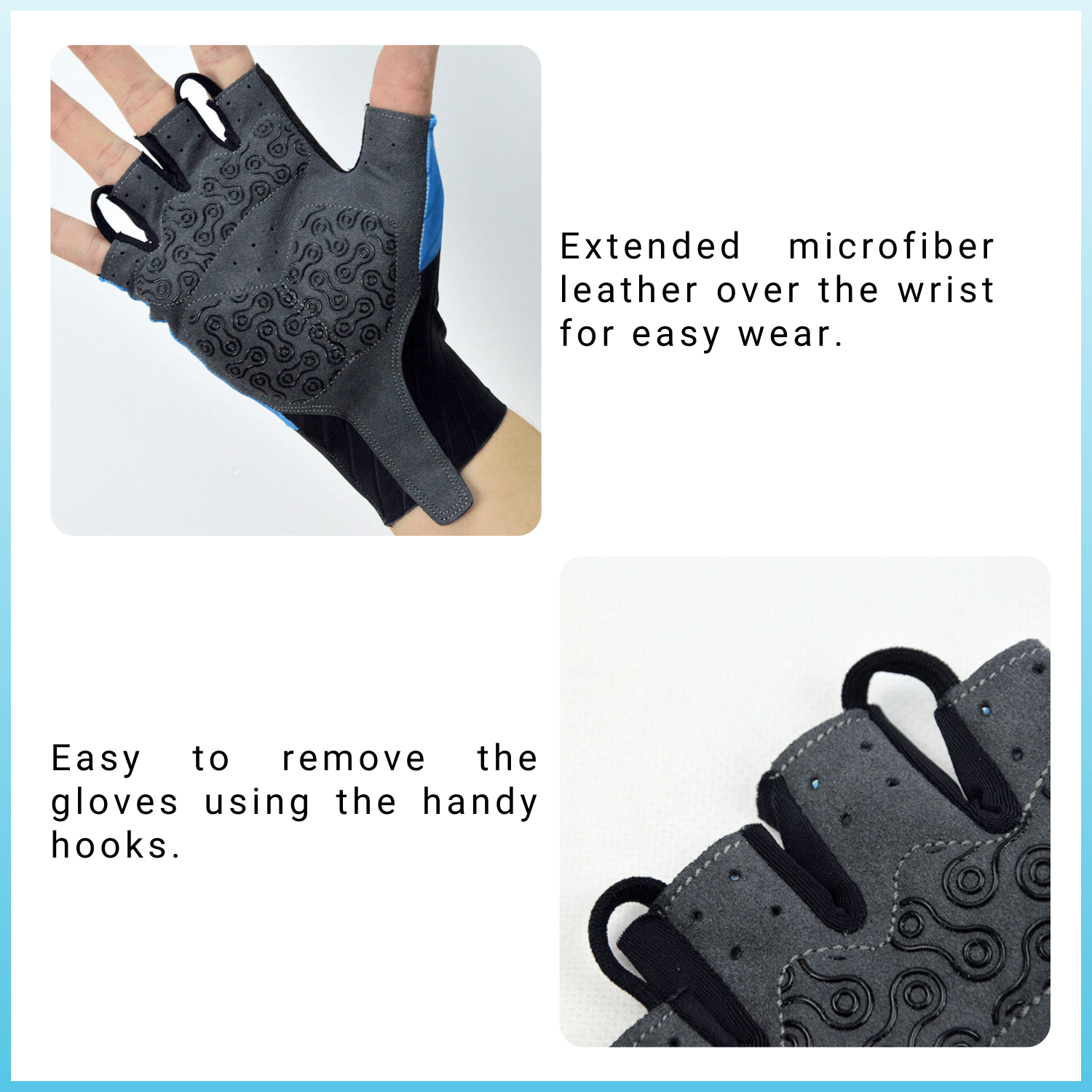 Cycling gloves in 3 colors, Size S to 2XL, featuring shockproof SBR palms, breathable fabric, enhanced strength & durability and handy removal hooks.