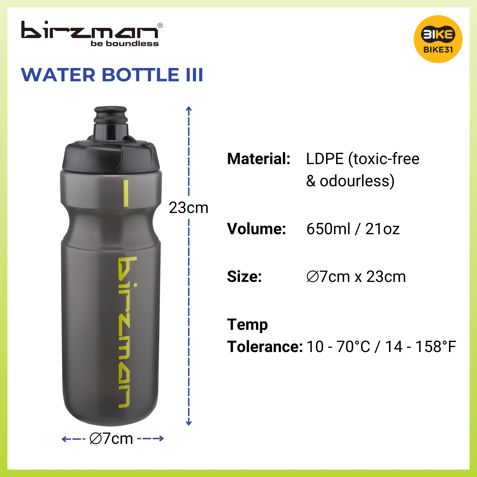 The Birzman Water Bottle III offers a perfect blend of functionality and safety for your hydration needs. With a capacity of 650ml (21oz), this bottle is made from toxic-free and odorless LDPE, ensuring a pure drinking experience. The innovative self-sealing nozzle eliminates splatters and spills, making it ideal for on-the-go use. Designed for active lifestyles, the Birzman Water Bottle III is your reliable companion for any adventure.