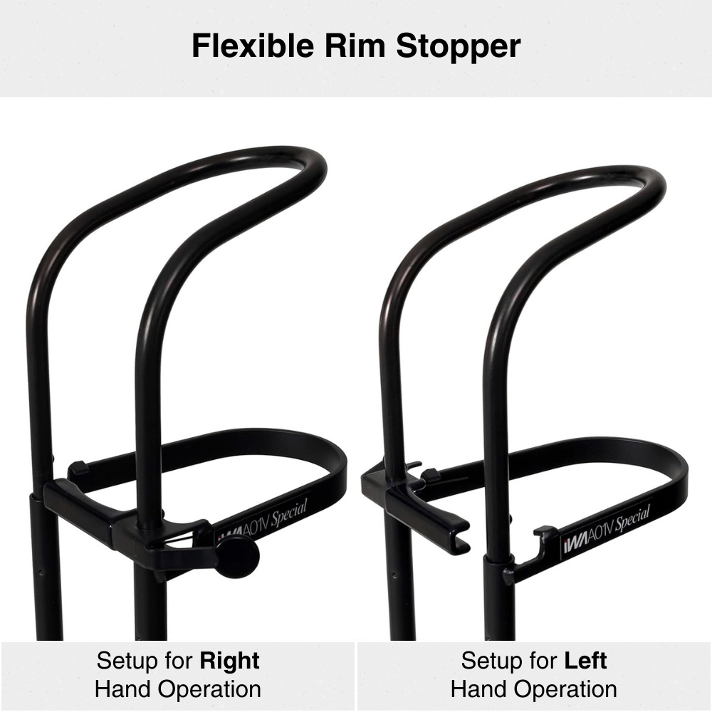 Our auto-locking system simplifies bike storage. Just insert the front wheel, and your bike is securely fixed in place. When you're ready to go, it's effortlessly released with just one hand. Additionally, you have the flexibility to attach the rim stopper on either the left or right side, giving you the freedom to install it wherever suits you best.