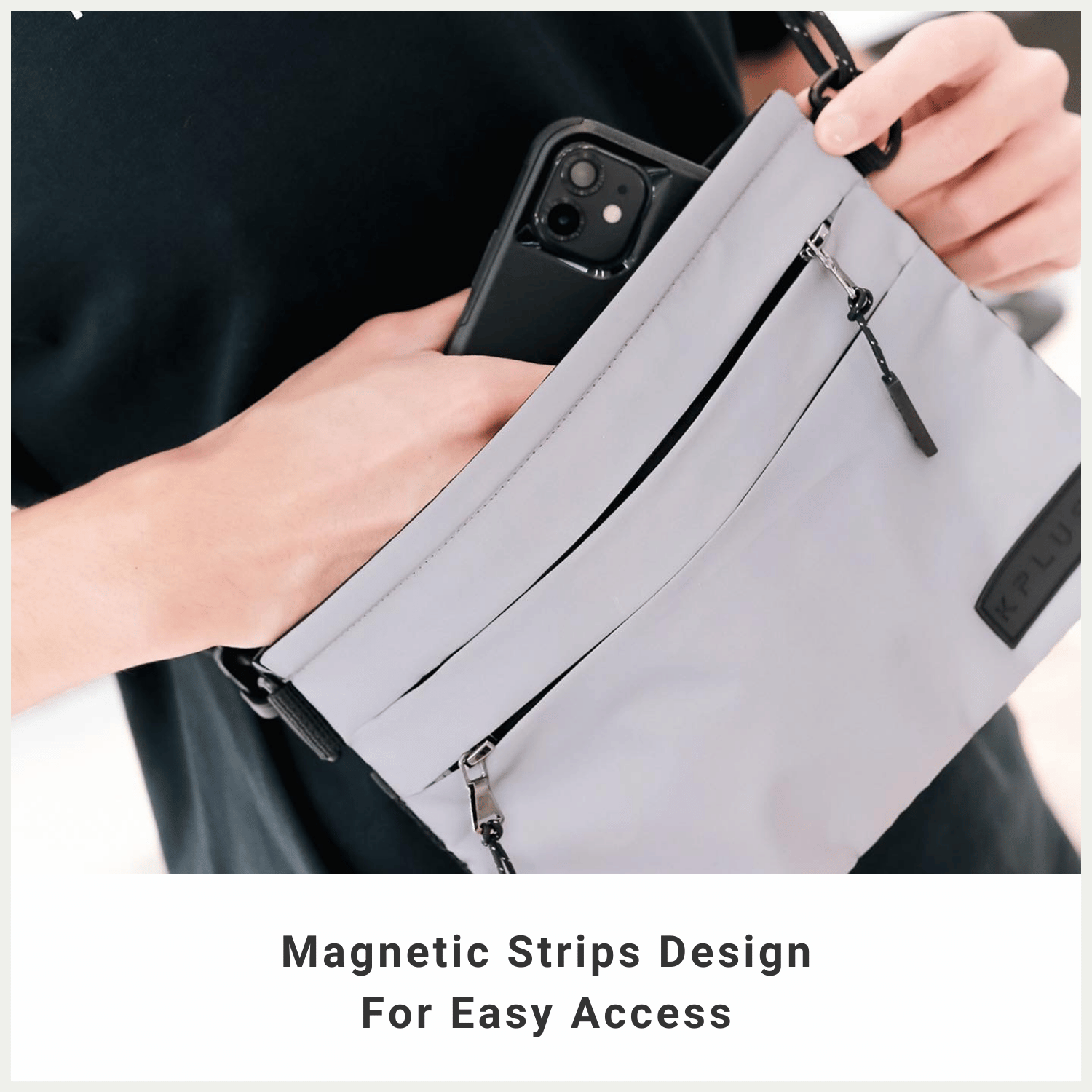 The KPLUS Sacoche bag is designed for both outdoor sports and daily life usage. The capacity is enough to put in all basic personal items needed for the day. Dual-layer zipper compartment design on the outer layer let you better organise your items. A large inner pocket with a magnetic stripe opening allows you to easily and more convenient to store and retreive bigger items about the size of an ipad mini. The mesh layer design can also fit smaller things such as mobile phones, earpiece, etc.