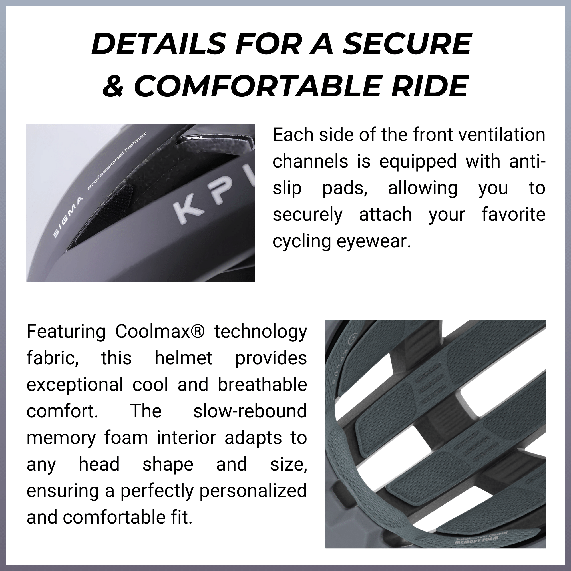 Celebrate a decade of excellence with the SIGMA road cycling helmet, a distinguished special edition by KPLUS. Drawing its name from the mathematical symbol Σ, representing the "sum," SIGMA encapsulates the essence of KPLUS's ten years of superior craftsmanship and core values.