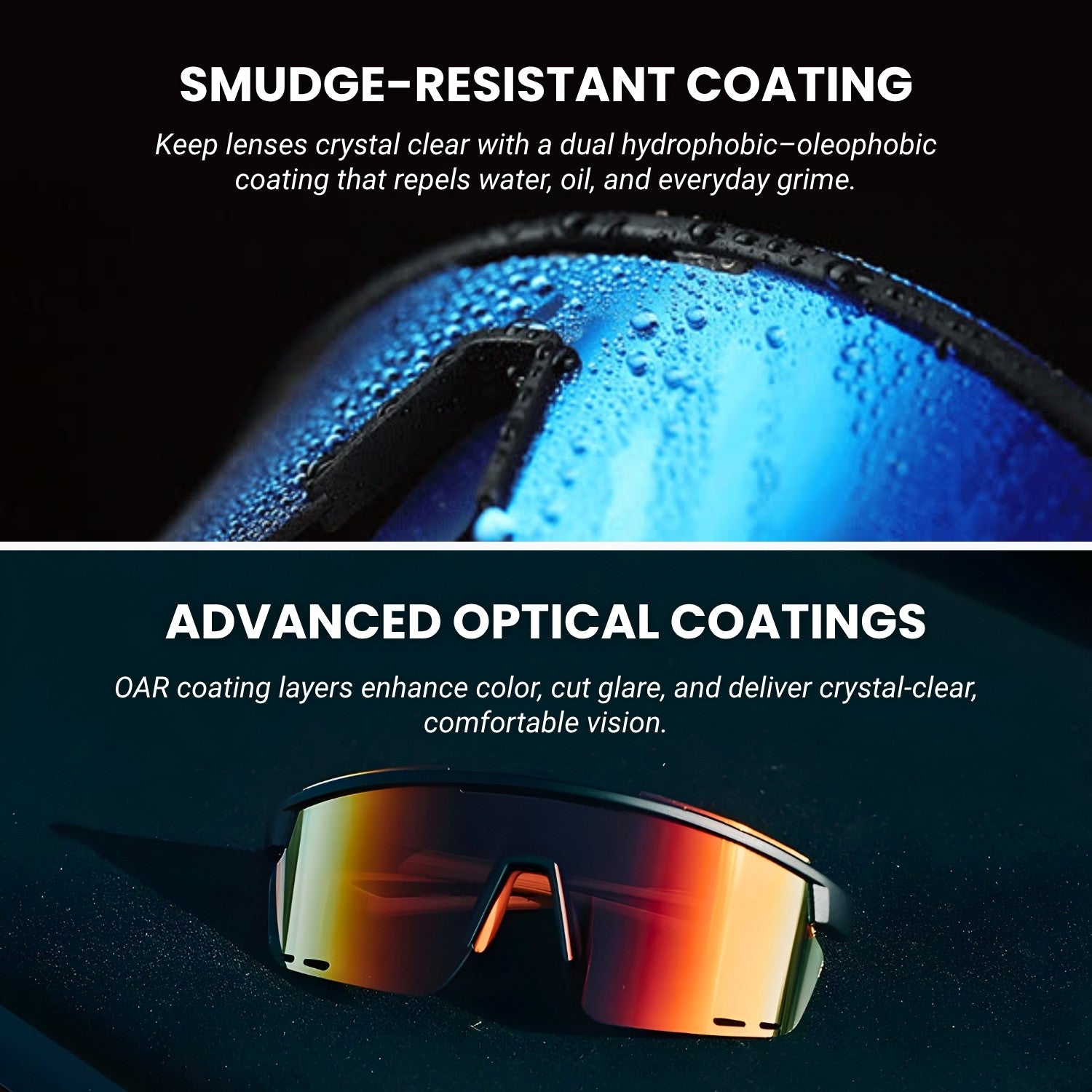 ROULEUR is performance cycling eyewear built for clarity and control. A semi-rimless, large PC wrap lens gives a wide field of view and reliable protection. Lens and temple vents reduce fogging, while a TR90 frame with TPR grips and anti-slip nose pads stays secure and comfortable, ride after ride.