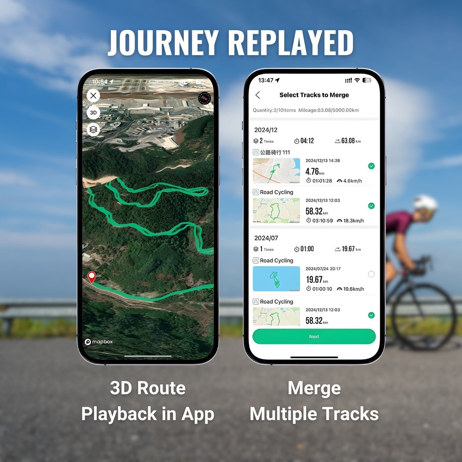 > Upload and review rides in the Navihood App, with 3D track video sharing