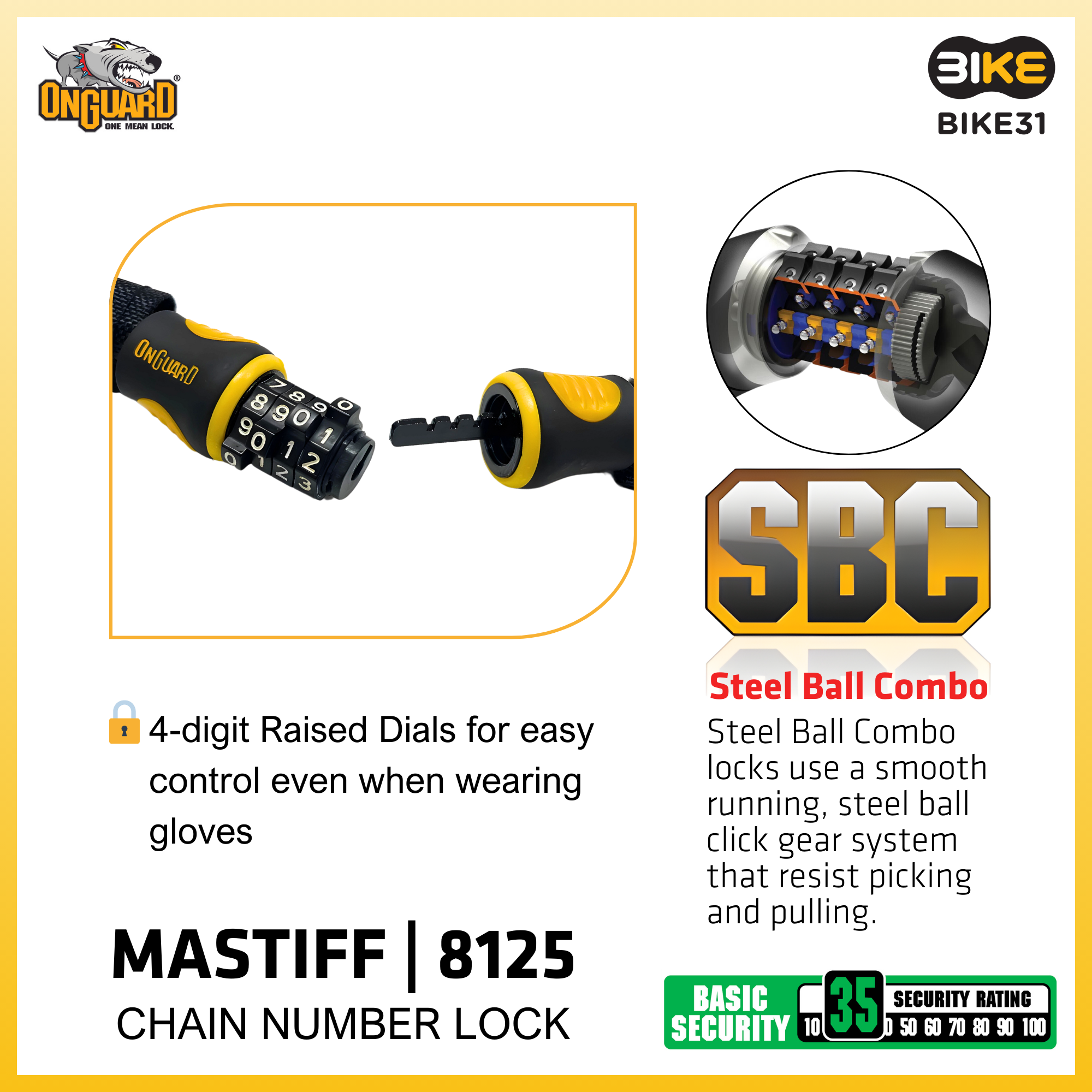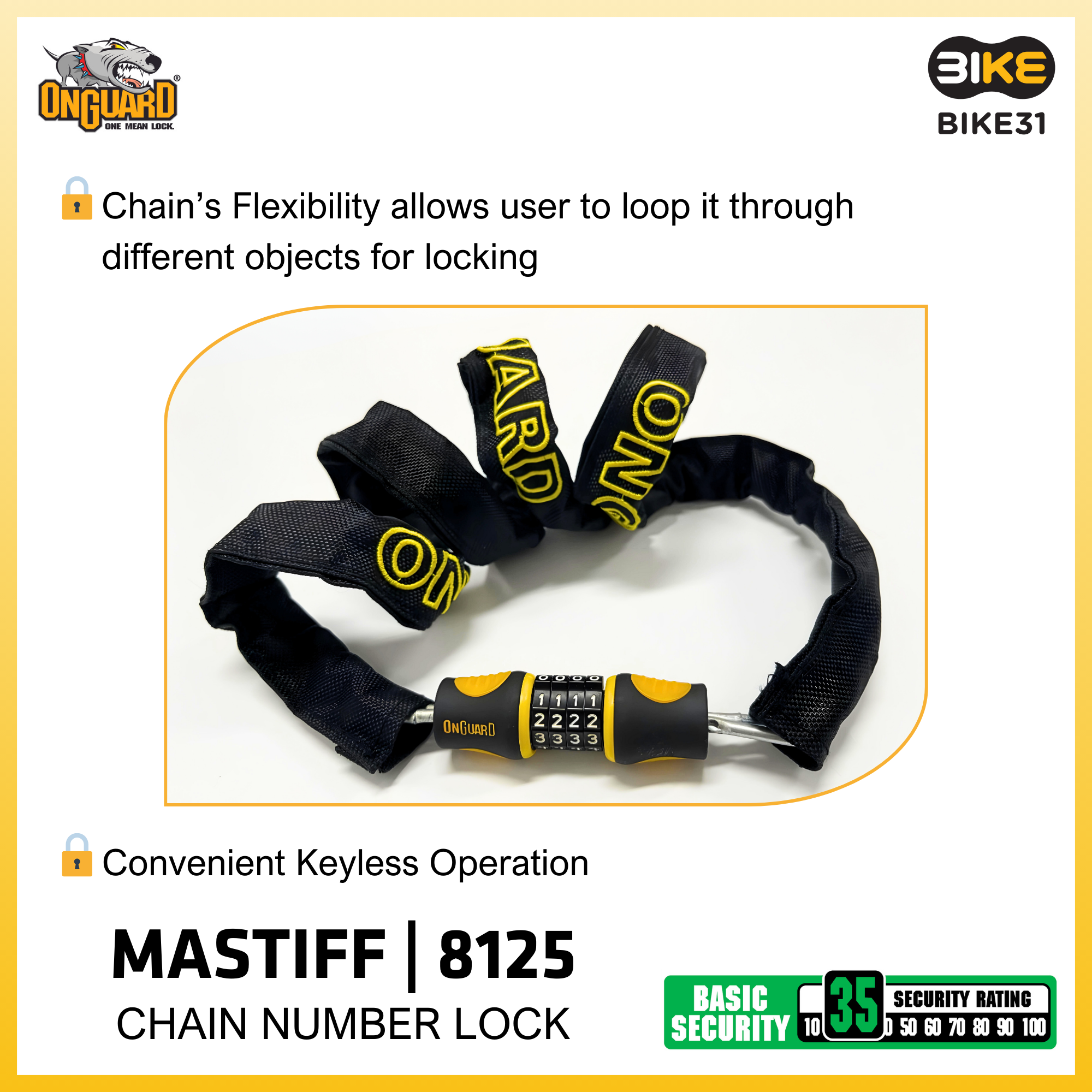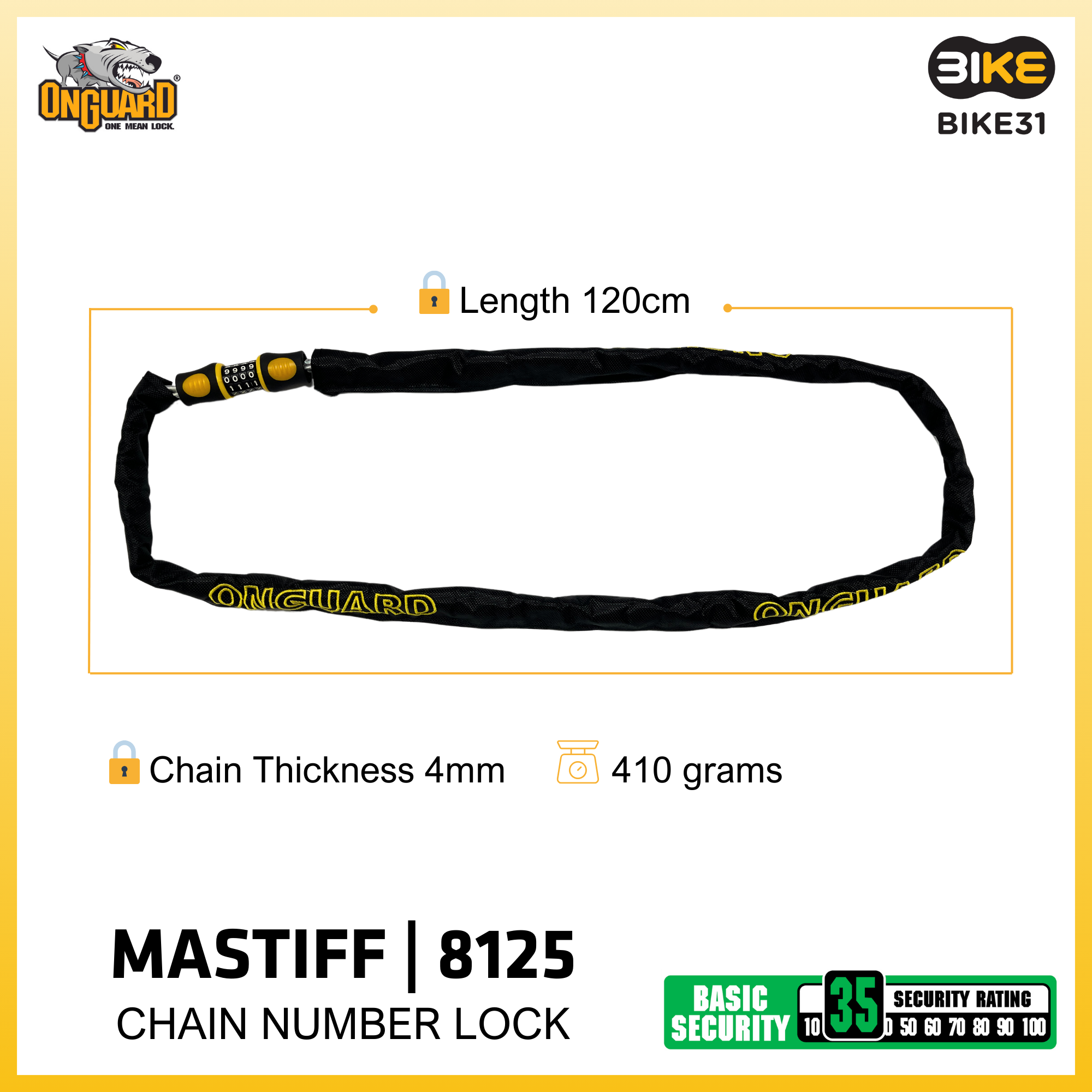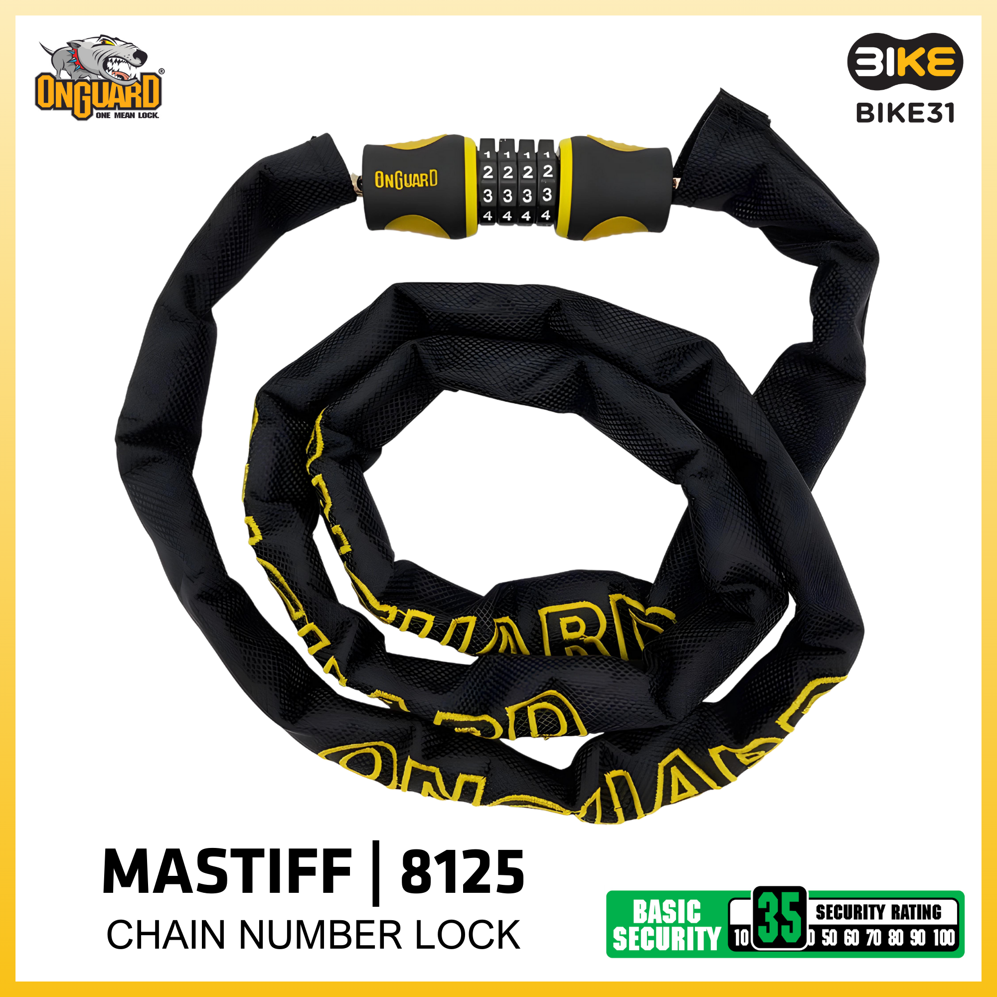 ONGUARD MASTIFF 8125 BICYCLE CHAIN NUMBER LOCK (120cm x 4mm)